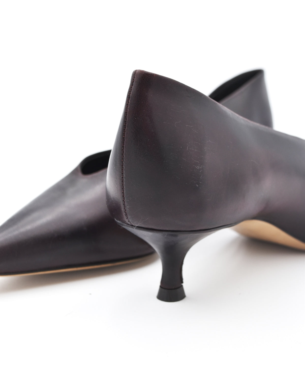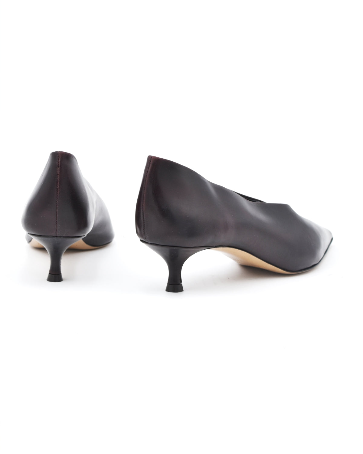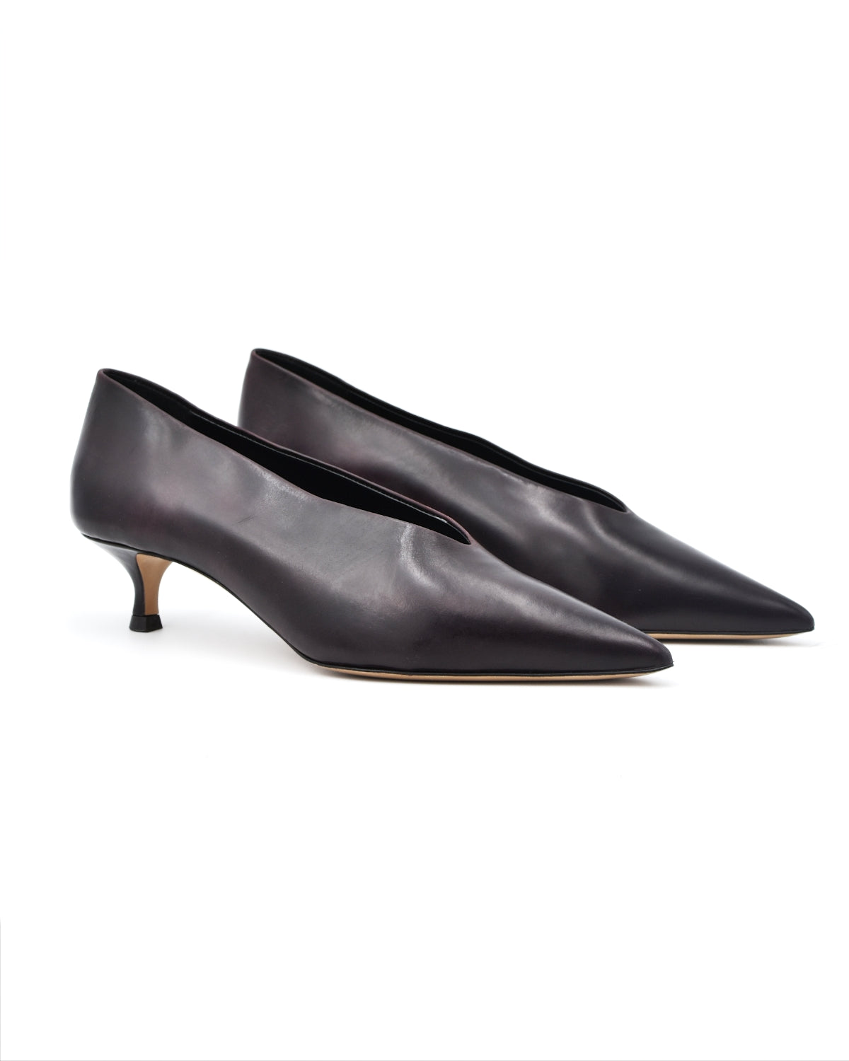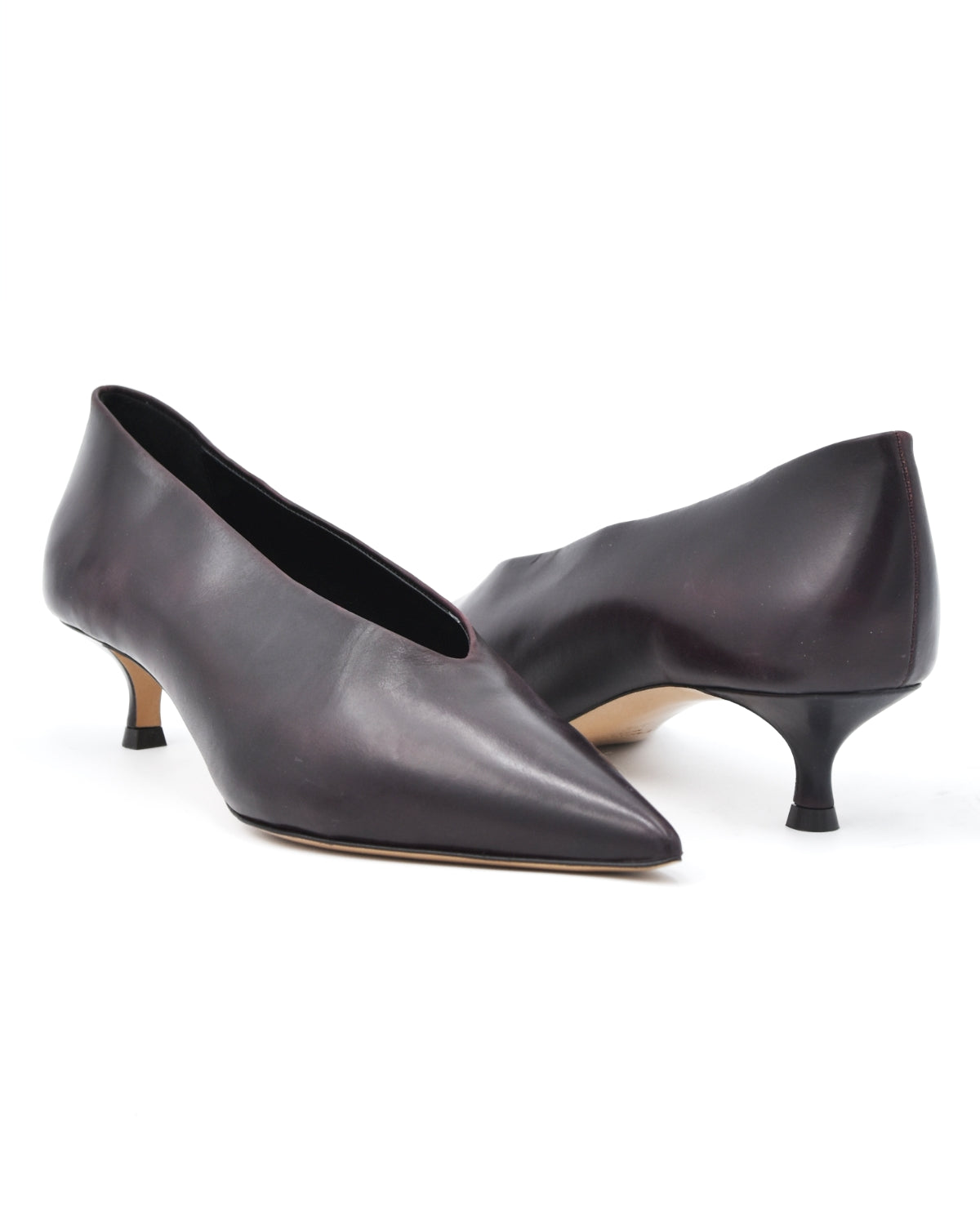 The Babouche from Le Monde Beryl is a pointed leather kitten heel. This beautiful leather shoe is made in a red oxblood eel embossed leather and features a cushioned leather insole and a 1.5" heel.