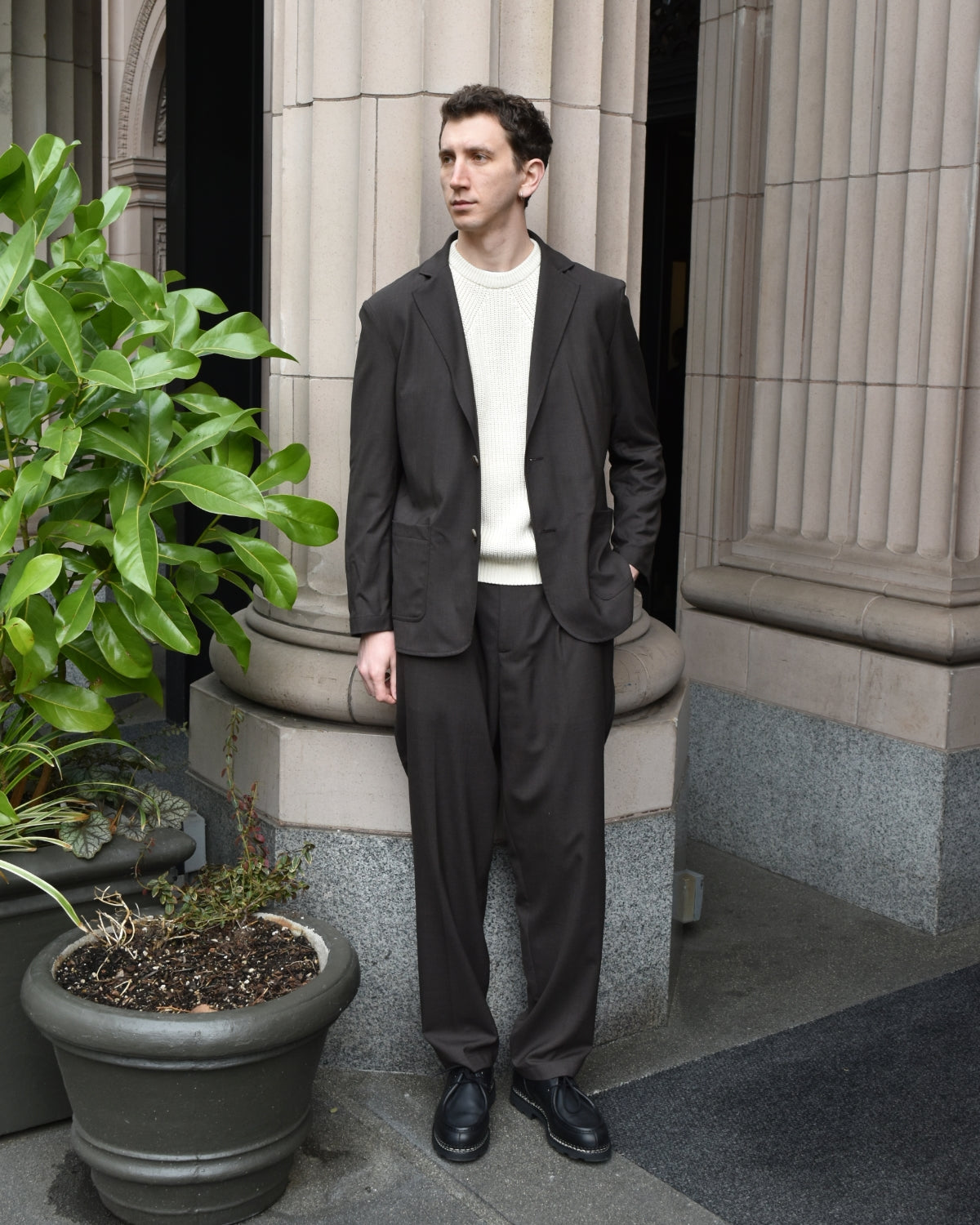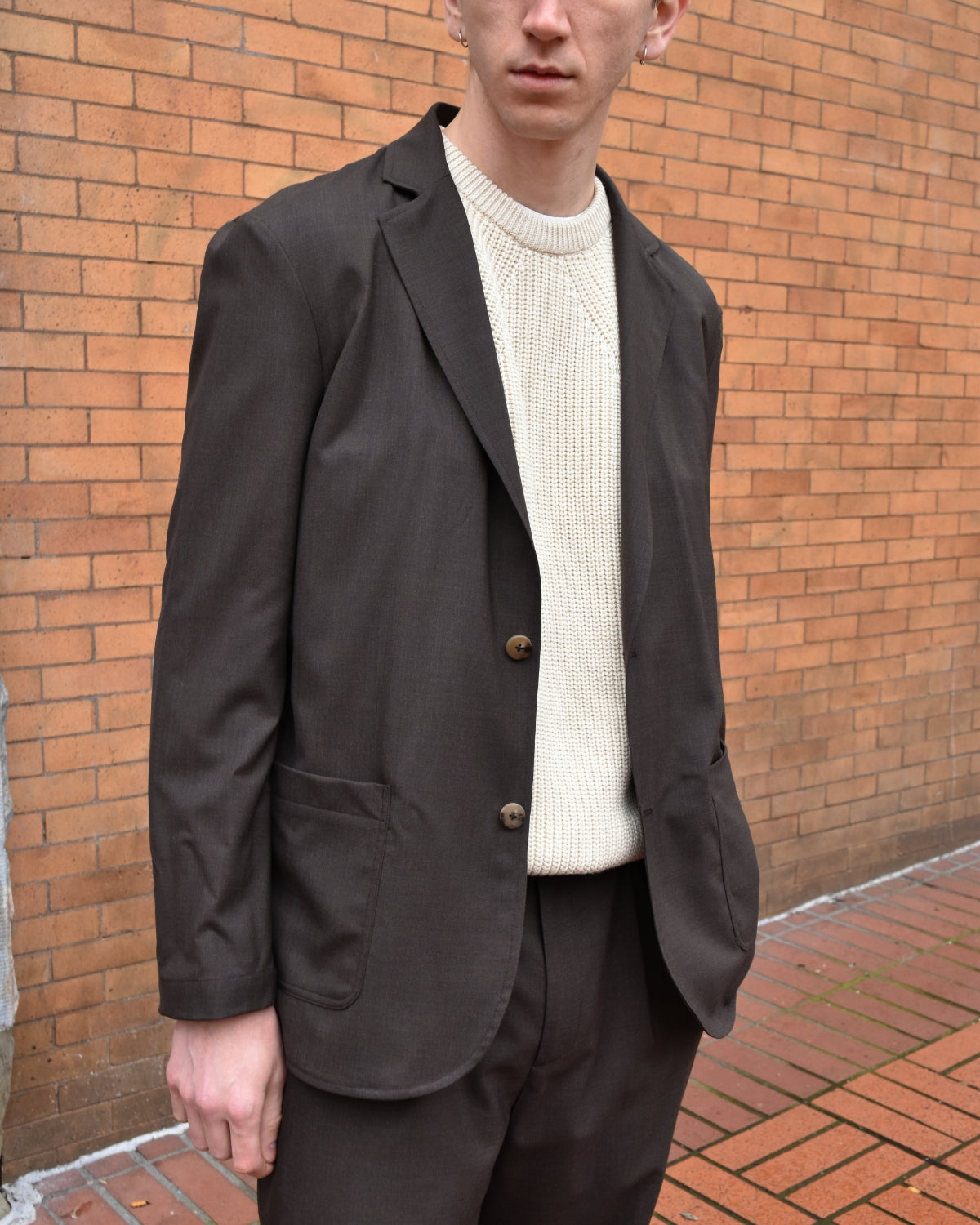 Cut from Italian-woven Super 130’s cold wool in a rich bark brown, the fabric has a soft, elevated hand and year-round versatility. Expertly crafted in France, this jacket reflects the brand’s commitment to exceptional materials, fit, and finish.