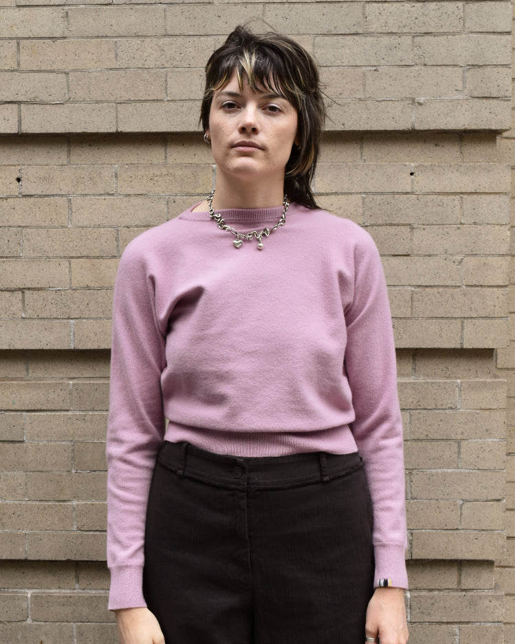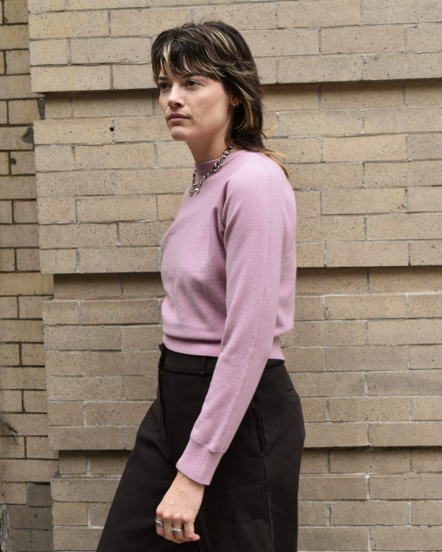 The Belle sweater from Extreme Cashmere in a slightly relaxed-fit boatneck sweater with ribbing along the neck, wrists, and hem.