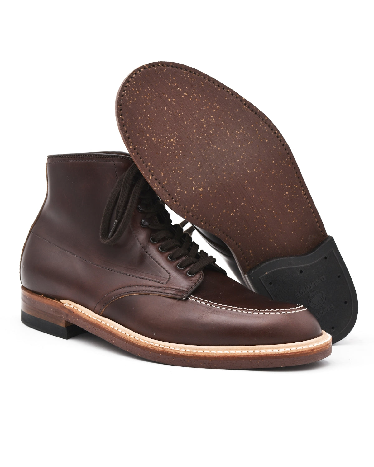The Alden 403 Indy Boot is an icon in leather footwear. First designed as a durable mocc-toe boot for hard use, it earned its legendary status when chosen by Harrison Ford as the footwear of Indiana Jones. Built in Horween Chromexcel leather and finished with Alden’s time-tested craftsmanship, the 403 blends heritage durability with timeless style. A true classic, the Indy Boot embodies over a century of Alden shoemaking tradition, carrying forward its reputation as one of the most distinctive boots ever made.