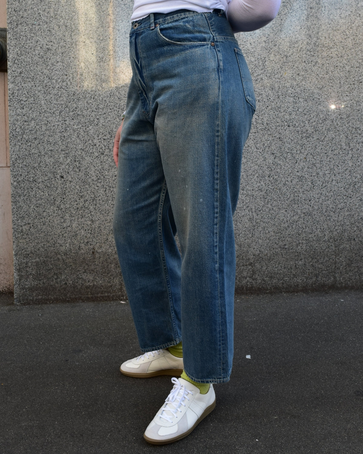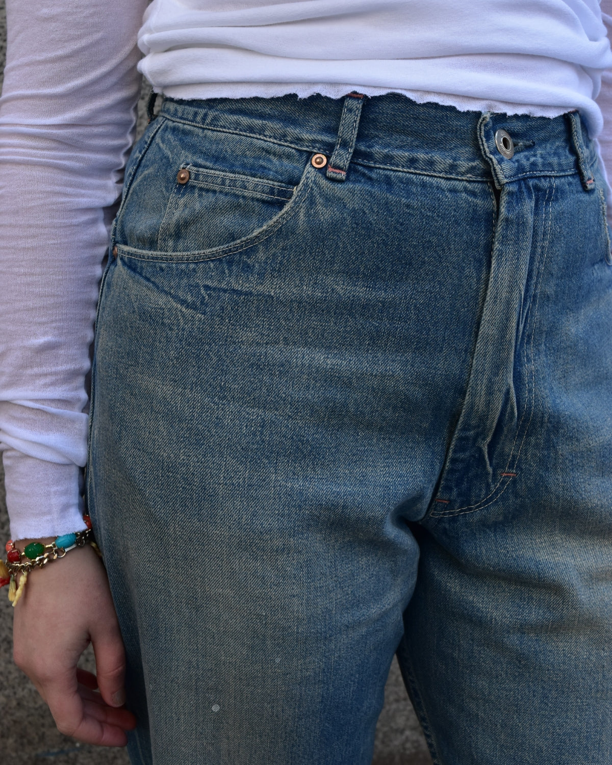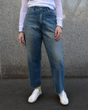 The Ranch Pant from Chimala is a wide straight cut. Features include a zipper fly and high rise inseam. These jeans have a well worn feel and medium light wash. ready for you.