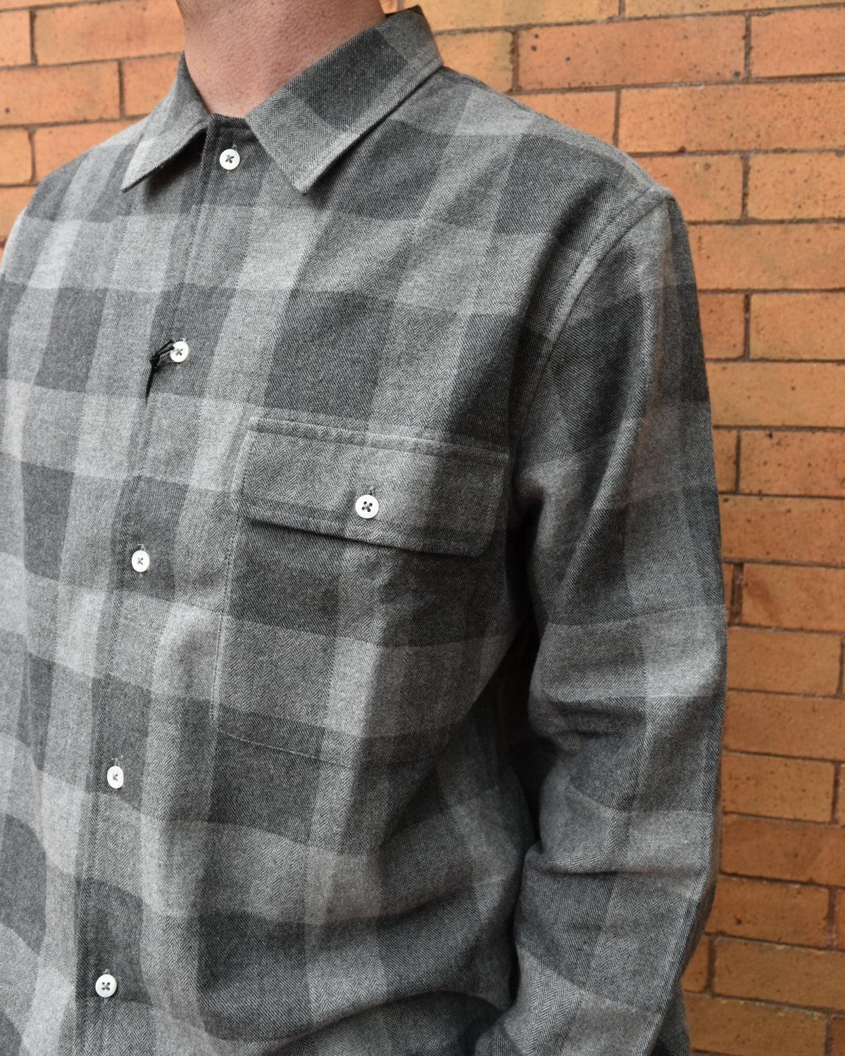 De Bonne Facture Camp Collar Shirt in Charcoal Cotton Plaid