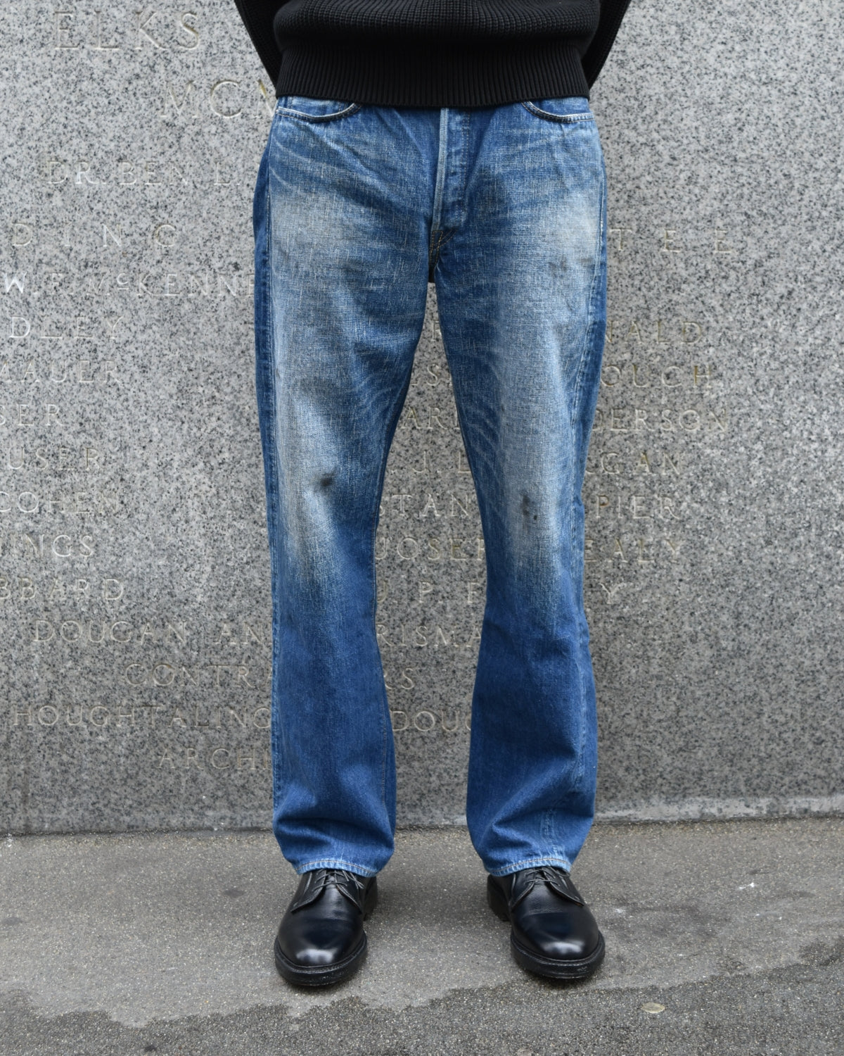 The Fullcount 1344‑0105 “More Than Real” Wide Denim is built on Fullcount’s signature 0105 wide silhouette, offering a relaxed straight fit with generous room through the thigh and a clean drape. Made in Okayama, Japan from 13.7oz selvedge denim woven with 100% Zimbabwean cotton, the fabric is known for its softness and durability while maintaining the rich character of traditional denim. This pair features Fullcount’s “More Than Real” aging process, an advanced wash designed to replicate the depth, fading, and wear patterns of vintage denim with remarkable realism. Finished with classic five-pocket construction, a button fly, and Fullcount’s leather patch, it combines authentic Japanese craftsmanship with a convincingly worn-in vintage look.