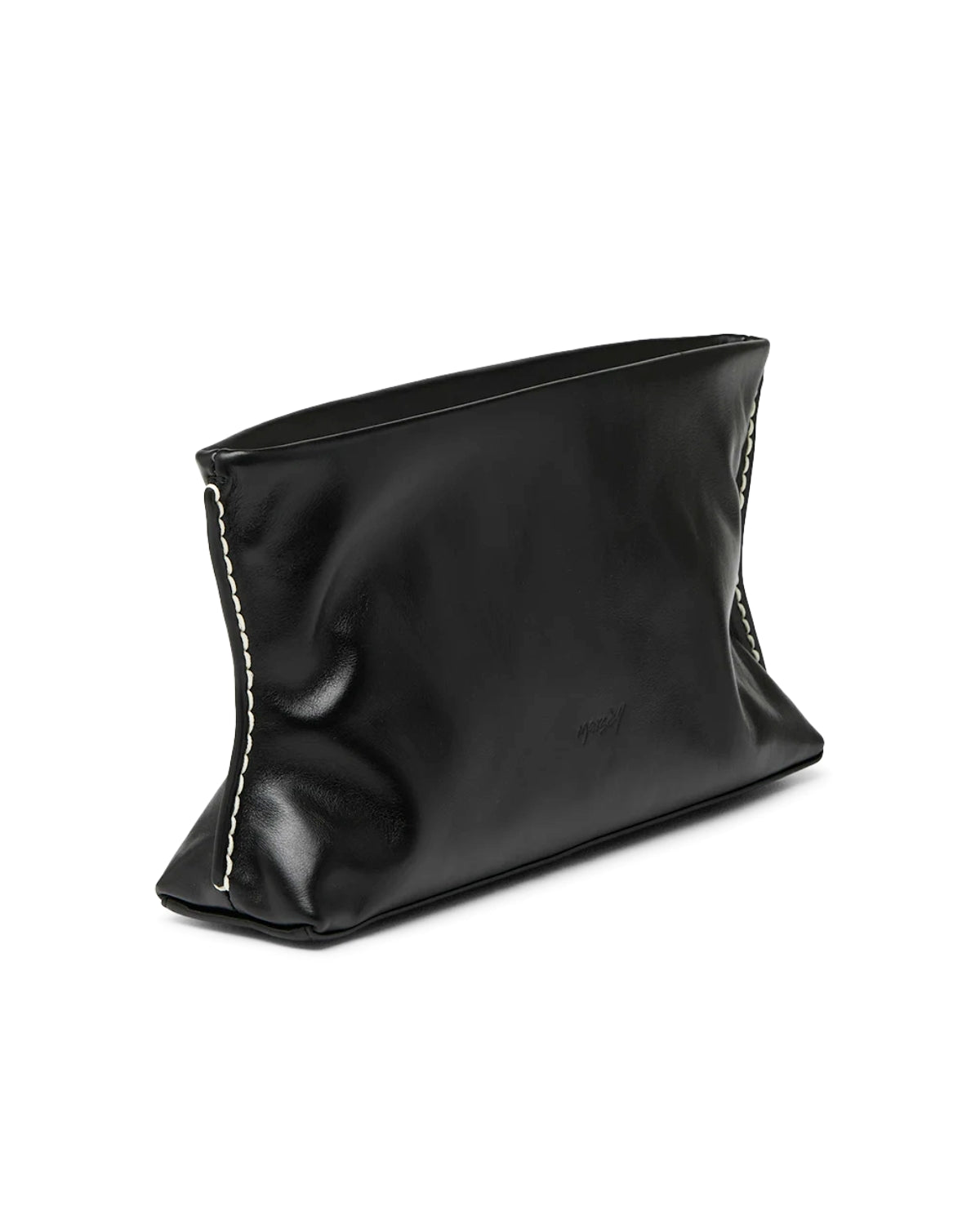 The Dipi Filo clutch from Marsèll showcases the brand’s signature understated approach to luxury. Crafted in Italy from supple, finely grained leather, the softly structured silhouette features subtle gathered detailing at the sides, creating a sculptural shape with quiet elegance. A zip closure opens to a compact interior with a small zip pocket, while the detachable strap allows it to be carried as a clutch or worn over the shoulder. Thoughtfully made with exceptional materials, it is a refined piece that balances modern design with artisanal craftsmanship.