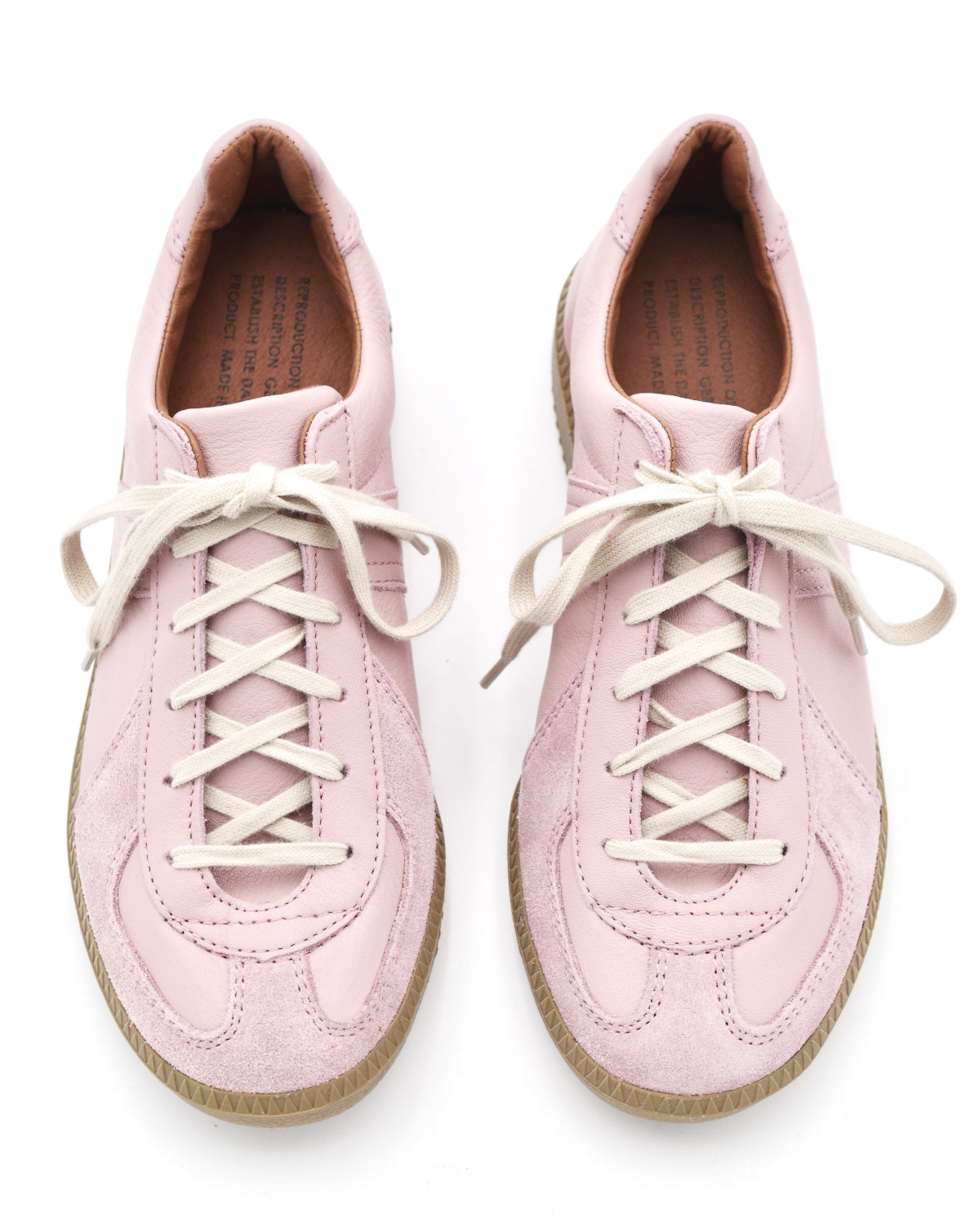 The iconic GAT sneaker from Reproduction of Found is a 1700L German Military Trainer painstakingly recreated by the brand down to the last detail. The main distinction from the original sneaker is the material choices. In this modern edition, you will find premium Italian leather and suede detailing and an exceptionally comfortable leather insole.
