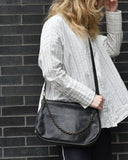Shoto's exceptional craftsmanship and quality doesn't end with footwear. The betta bag is a prime example of their skill with leather crafting. This bag has a brass chain handle as well as a detachable leather cross body strap. Other features include two interior patch pockets and a spring loaded clasp that keeps the bag from opening unexpectedly.