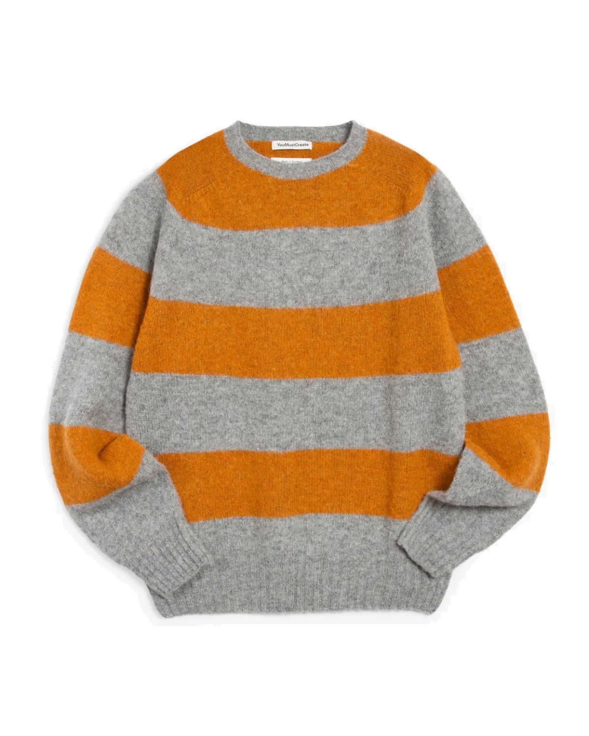 The YMC Suedehead Striped Sweater is a modern knit with a subtle graphic edge, crafted from fuzzy for comfortable, everyday wear. Designed with a relaxed fit, it features bold horizontal striping, a classic crew neckline, and clean ribbed trims at the cuffs and hem. The balanced weight makes it ideal for layering or wearing on its own, delivering an easy blend of casual attitude and refined construction that feels distinctly YMC.